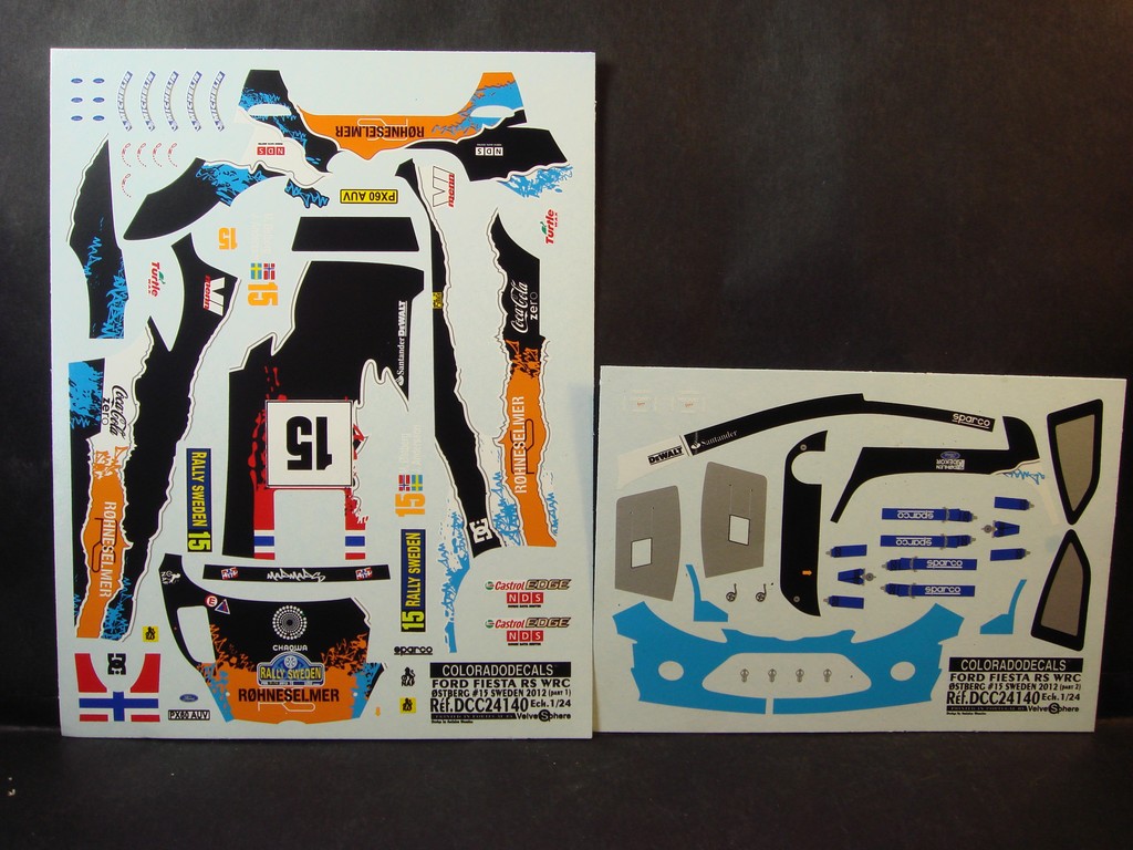 DECALS 1/24 FORD FIESTA RS WRC – #15 – OSTBERG – RALLYE SUEDE 2012 – COLORADO 24140