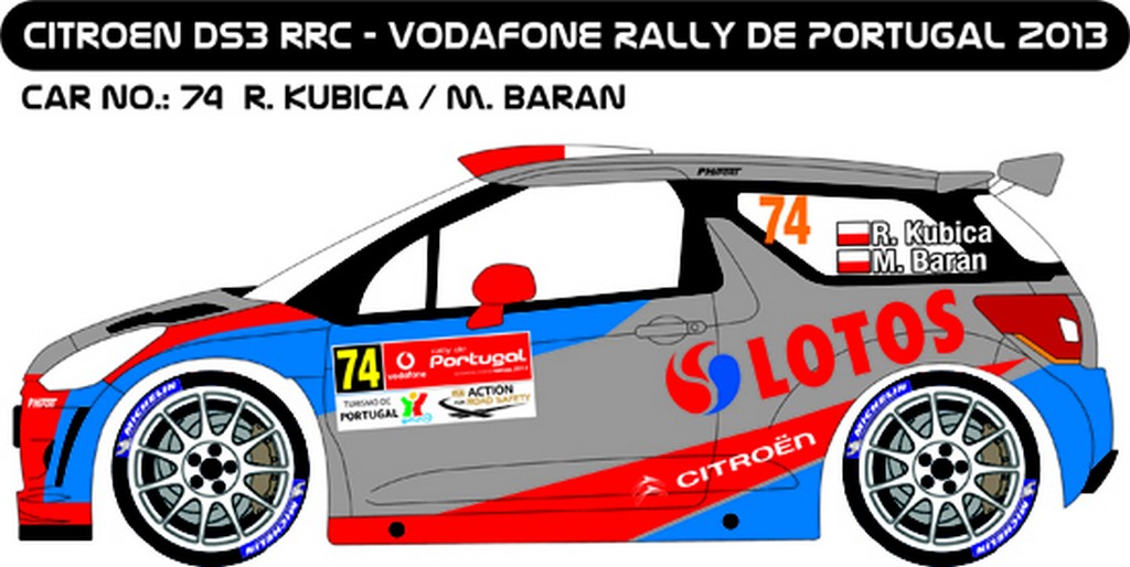 DECALS 1/43 CITROËN DS3 RRC – #74 – KUBICA – RALLYE PORTUGAL 2013 – D43202