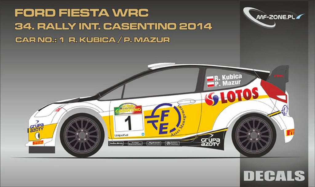 DECALS 1/43 FORD FIESTA WRC – #1 – KUBICA – RALLYE INTER CASENTINO 2014 – D43338