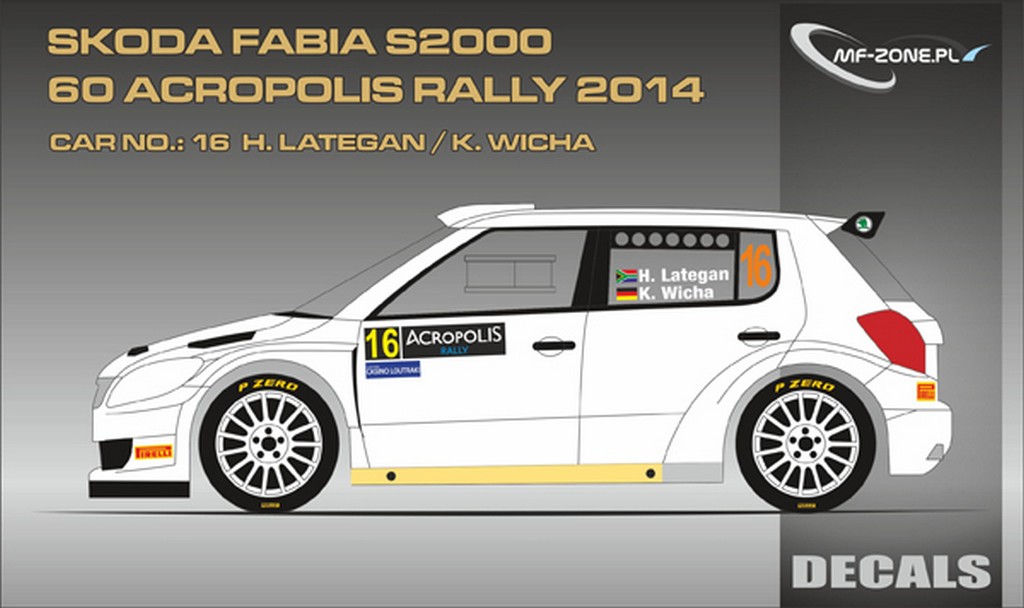 DECALS 1/43 SKODA FABIA S2000 – #16 – LATEGAN – RALLYE ACROPOLE 2014 – D43298