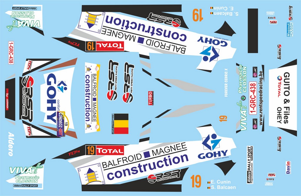 DECALS 1/43 SKODA FABIA WRC – #19 – CUNIN – RALLYE DU CONDROZ 2014 – D43416