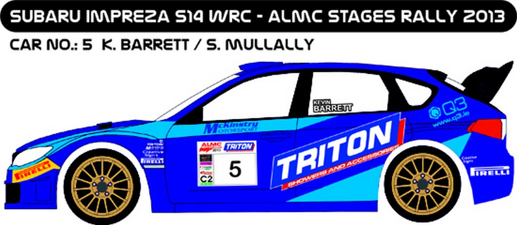 DECALS 1/43 SUBARU IMPREZA WRC – #5 – BARRETT – RALLYE ALMC STAGES 2013 – D43234